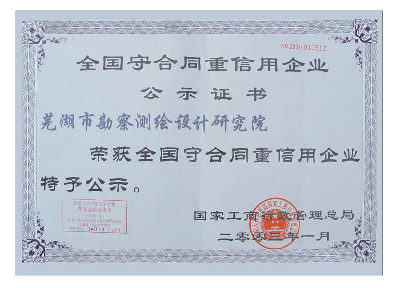 • 喜訊!公司被評為AAA級重合同守信用企業